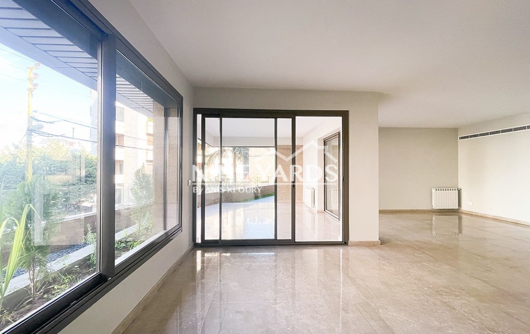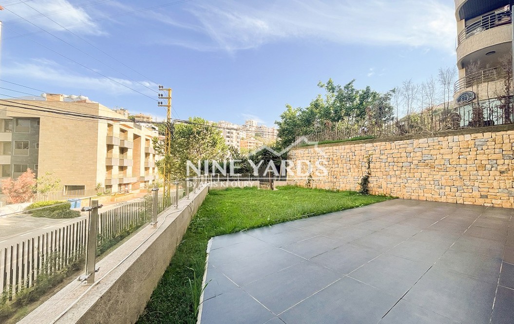 Presenting a 240 sqm garden floor apartment with a 200 sqm garden in Mtayleb, close to the American Embassy and Mtayleb Country Club. Set in a new, exclusive four-story building on a private road, this residence features new marble flooring, two parking spots, and a storage area. The spacious garden is ideal for a BBQ area and pool, offering modern living in a tranquil and prestigious neighborhood.