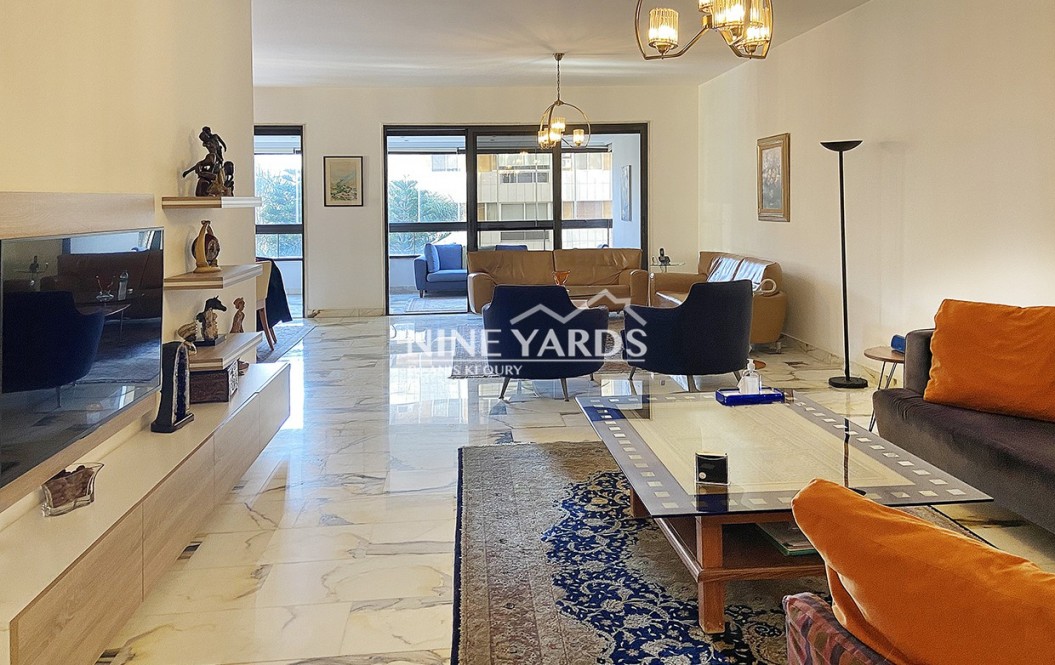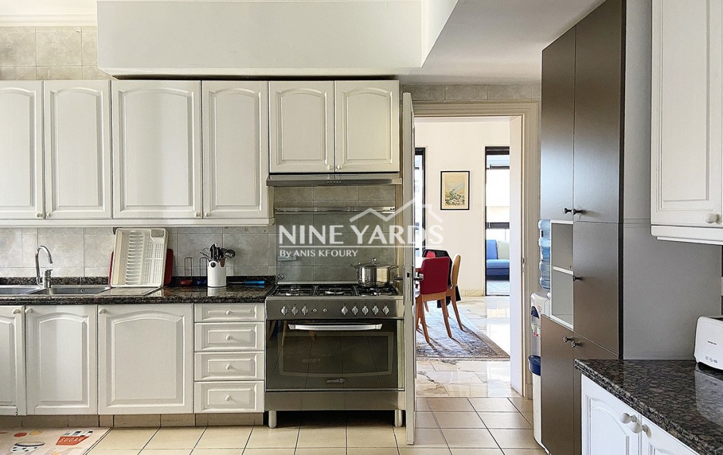 Nature vibes will accompany you from the main entrance with trees and fountains until you reach this beautiful apartment located in a nice tower in Tallet El Khayat.